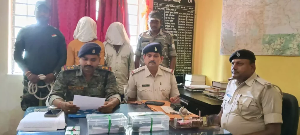 पलामू{ गहरी खोज }: लेस्लीगंज थाना क्षेत्र के भकासी गांव में पुलिस ने दो युवकों को अवैध हथियार के साथ गिरफ्तार किया है। गिरफ्तार आरोपियों की पहचान सुनील कुमार और करण कुमार के रूप में हुई है। जानकारी के अनुसार, पुलिस को गुप्त सूचना मिली थी कि दो युवक अवैध हथियार के साथ घूम रहे हैं। सूचना के आधार पर पुलिस छापेमारी करने गयी और दोनों को गिरफ्तार कर लिया। पुलिस ने दोनों आरोपियों के पास से दो देसी कट्टा, दो आठ एमएम का जिंदा कारतूस और एक वन प्लस स्मार्ट फोन भी बरामद किए हैं। आर्म्स एक्ट की धाराओं के तहत दोनों को गिरफ्तार कर न्यायिक हिरासत में भेजा दिया गया है।